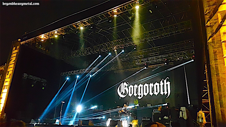 Lampu sorot kemudian diarahkan ke drum kit di panggung Hammer, dan sosok dengan corpse paint ternyata sudah duduk di situ. Phobos! Sang drummer anyar Gorgoroth sudah siap dengan parangkat ‘perang’-nya. Kemudian muncul 2 sosok plontos dengan corpse paint dan kostum hitam-hitam: Skyggen (aka Paimon) dan Guh Lu! Sang gitaris dan bassist langganan Gorgoroth untuk tampil live di panggung. Setelah itu dari samping panggung muncullah sang iblis: dengan corpse paint, tank top hitam, celana hitam, asesoris spikes yang minimal, plus gitar, menatap tajam ke arah penonton! Infernus, sang iblis Norwegia! Walaupun terlihat kurang fit karena terlihat terlalu gemuk, Infernus masihlah memancarkan aura iblis yang hitam pekat. Tidak lama kemudian, enter Hoest, sang iblis Norwegia lainnya yang menjadi vokalis Gorgoroth khusus untuk live. Hoest, yang malam itu terlihat seperti orc yang haus darah, mengambil posisi di depan panggung. Saya terdiam, tidak bersuara, melalui salah satu moment of my life: ketika berada tepat di depan panggung pada saat Gorgoroth akan beraksi. Waktu seperti berhenti. Seakan-akan para iblis dan setan pun rehat sejenak dari kegiatan mereka dan ikut menonton di depan panggung Hammer pada saat itu.